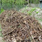 Die nächste Schicht ist etwas feiner. Dünnere Äste und Staudenschnitt werden auf das grobe Material aufgeschichtet und auch gleich immer gut festgetreten.